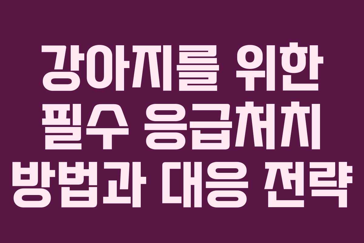 - 2026년 강아지 응급처치 기본 원칙 및 필수 지식