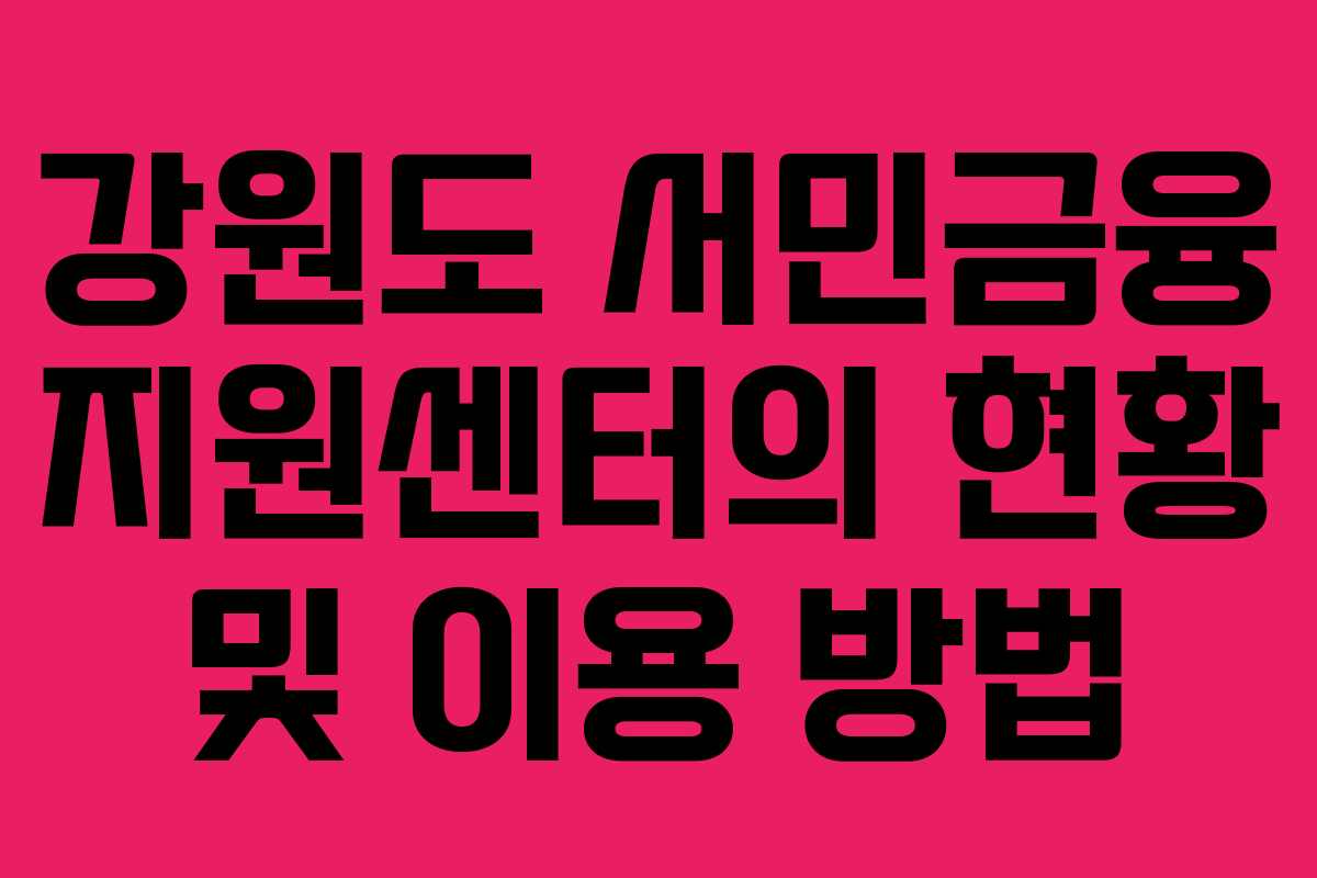 - 강원도 서민금융 지원센터 이용 실전 가이드