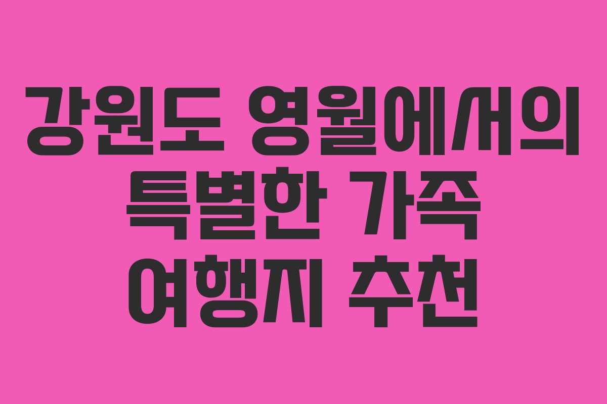 강원도 영월은 아름다운 자연경관과 함께 특별한 여행 경험을 선사하는 곳으로, 가족 단위로 방문하기에 안성맞춤입니다. 이번 여행을 통해 영월의 매력을 깊이 느낄 수 있었으며, 다양한 관광 명소를 추천하고자 합니다. 여기는 모두 당일치기로 충분히 즐길 수 있는 장소들입니다.