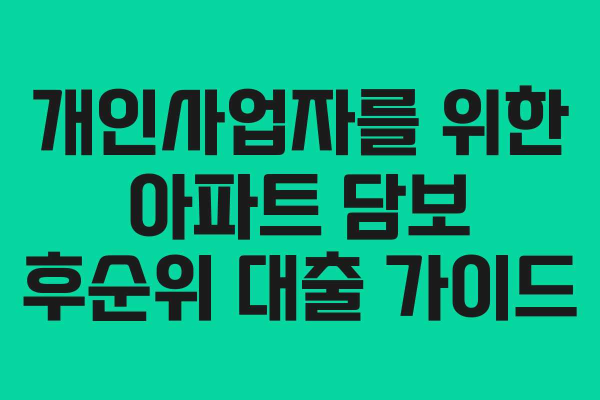 최근 개인사업자들이 아파트 담보를 활용해 후순위 대출을 고려하는 경우가 늘고 있습니다. 특히 소득 증빙이 어려운 상황에서도 대출이 가능하다는 점이 주목받고 있습니다. 이번 글에서는 후순위 아파트 담보대출의 조건, 한도, 금리, 이자 등을 자세히 살펴보겠습니다.