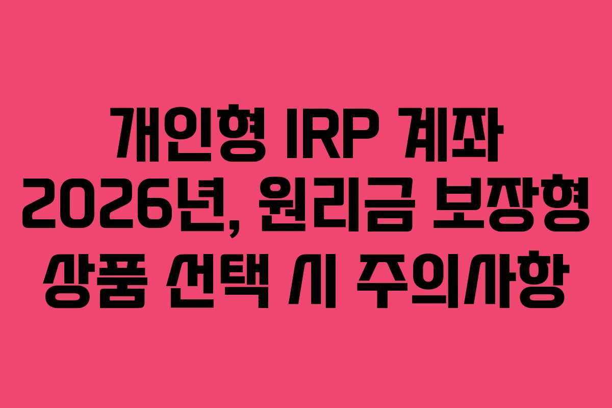 2026년, 저는 제 재정적 미래를 어떻게 설계할까 고민하며 개인형 퇴직연금(IRP) 계좌를 개설하기로 결심했습니다. 경제의 불확실성 속에서 안정적인 자산 관리의 필요성을 절감하며, IRP 계좌가 그 해결책이 될 것이라는 확신이 들었습니다. IRP 계좌는 단순히 퇴직금을 보관하는 통장이 아니라, 보다 많은 자산을 관리할 수 있도록 도와주는 강력한 도구입니다. 하지만 원리금 보장형 상품을 선택할 때는 몇 가지 주의사항이 필요하다는 것을 알게 되었습니다.