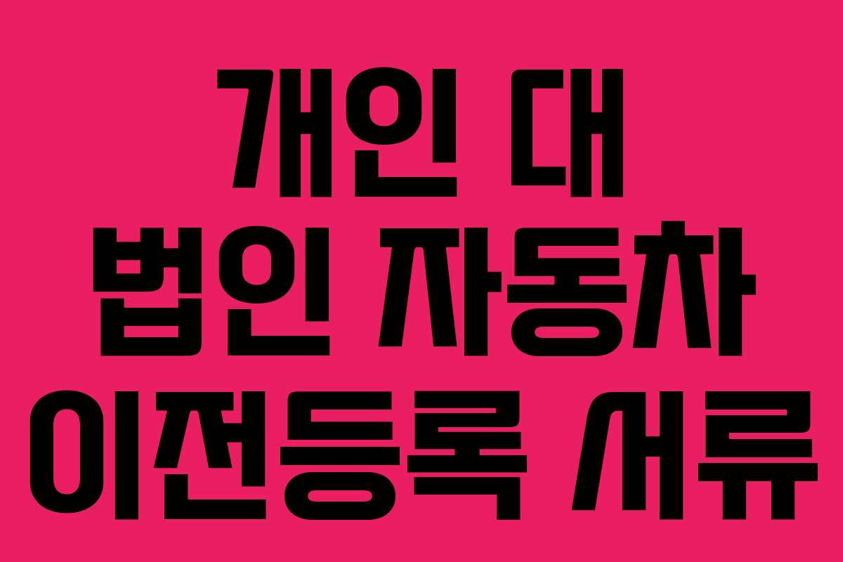 아래를 읽어보시면 개인 대 법인 및 법인 대 개인 간 자동차 이전등록에 필요한 서류를 상황별로 정리하고, 직접 방문과 대리인 방문의 차이, 절차상 주의점까지 한눈에 확인할 수 있습니다.