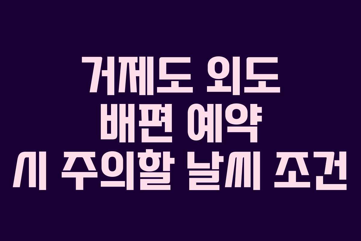 거제도 외도로의 여행을 계획할 때, 가장 먼저 고려해야 할 요소 중 하나는 날씨입니다. 바다로 둘러싸인 외도는 기상 조건에 따라 여행의 질이 크게 달라질 수 있기 때문입니다. 저도 처음 외도를 방문했을 때, 날씨의 중요성을 뼈저리게 느꼈습니다. 이 글에서는 제가 경험한 바탕으로 거제도 외도 배편 예약 시 주의해야 할 날씨 조건을 정리해보았습니다. 여행 준비에 도움이 되기를 바랍니다.