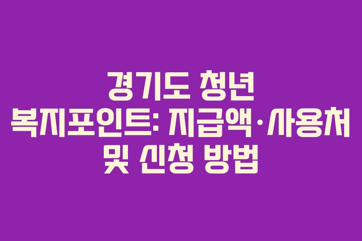 경기도 청년 복지포인트: 지급액·사용처 및 신청 방법