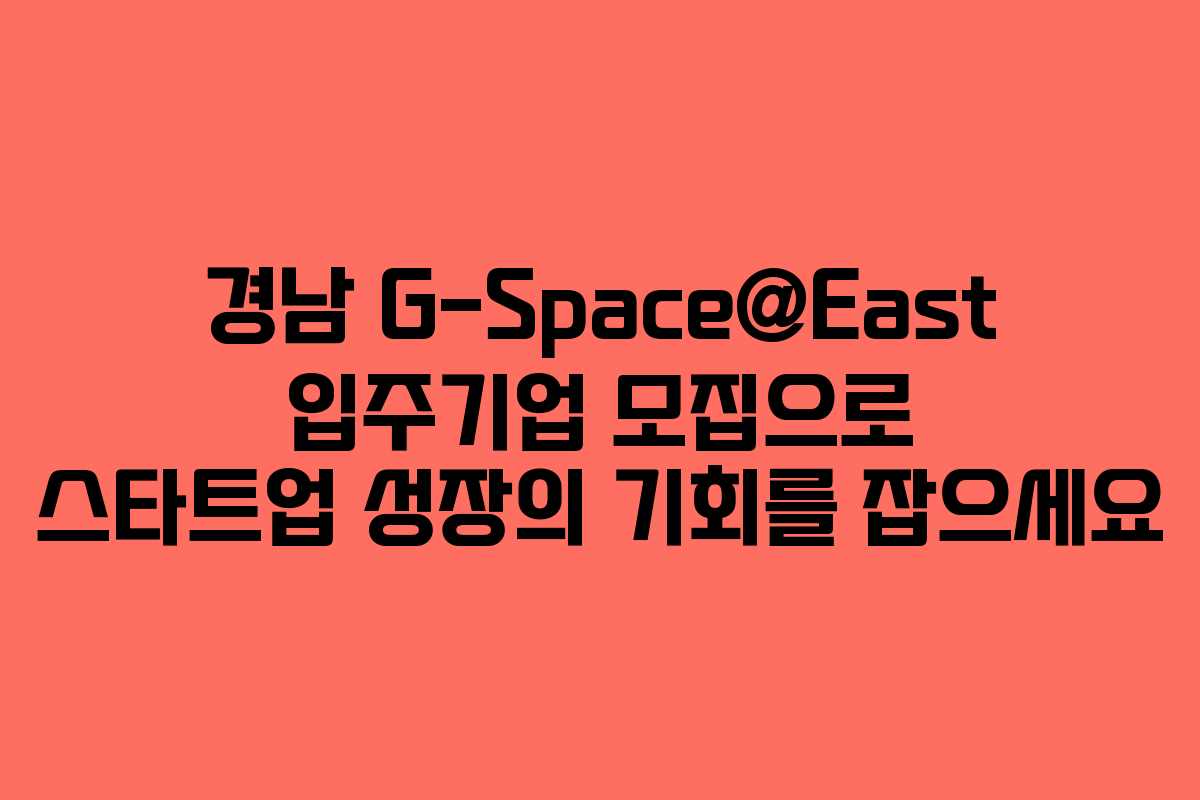 2025년 G-Space@East 입주기업 모집은 스타트업에게 소중한 기회를 제공합니다. 이 프로그램을 통해 더욱 성장할 수 있는 발판을 마련하십시오. 성공적인 스타트업 운영을 위한 첫걸음을 지금 바로 내딛길 바랍니다.