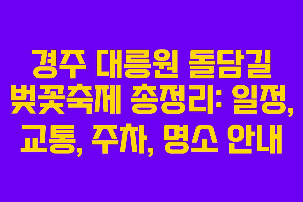 2026년 봄, 경주 대릉원 돌담길에서 벚꽃이 만개하며 특별한 축제가 열립니다. 이 축제는 아름다운 벚꽃과 화려한 프로그래밍으로 많은 사람들의 발길을 사로잡을 것입니다. 기대되는 이 축제를 맞아, 축제 일정, 교통 통제, 주차 정보, 그리고 벚꽃 명소에 대해 자세히 알아보겠습니다.