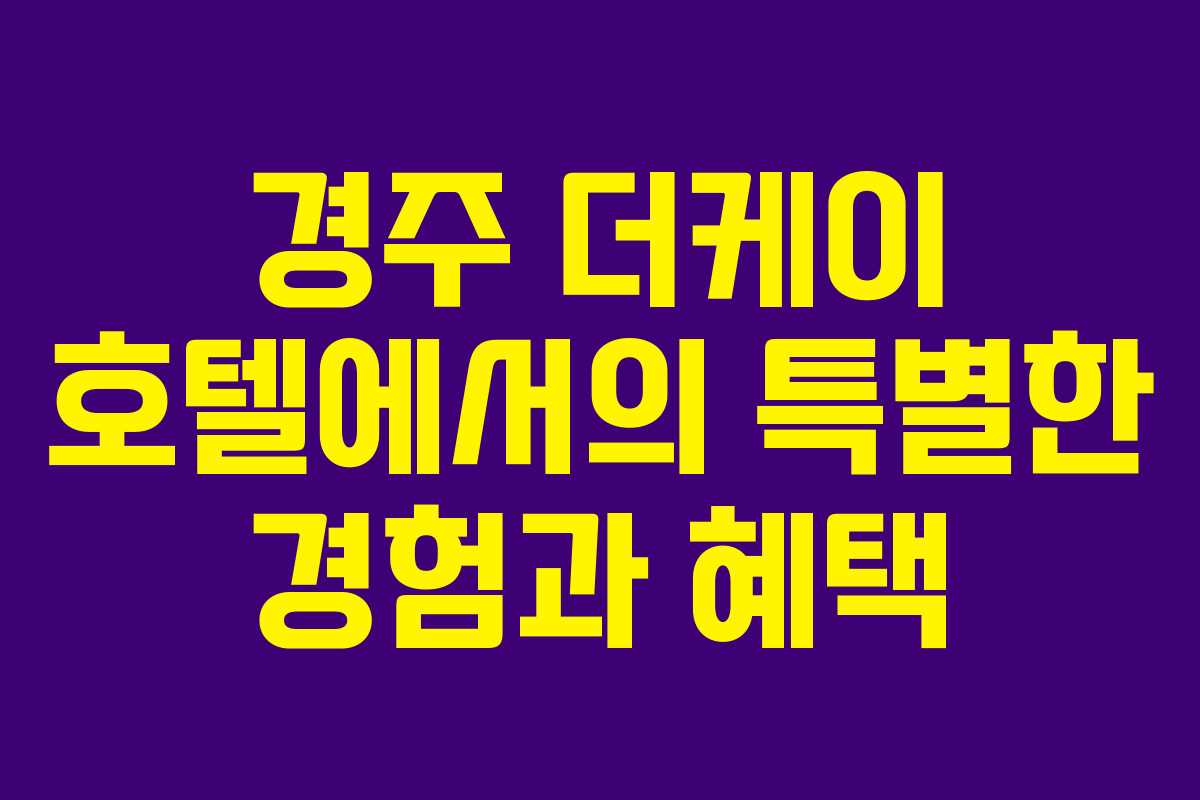 경주 더케이 호텔은 특별한 숙박과 다채로운 편의시설로 많은 방문객들에게 사랑받고 있는 장소입니다. 반려견과 함께할 수 있는 공간과 다양한 부대시설이 마련되어 있어 가족 단위 여행객들에게 적합한 선택이 됩니다. 이 글에서는 경주 더케이 호텔의 매력과 제공하는 서비스에 대해 자세히 살펴보겠습니다.