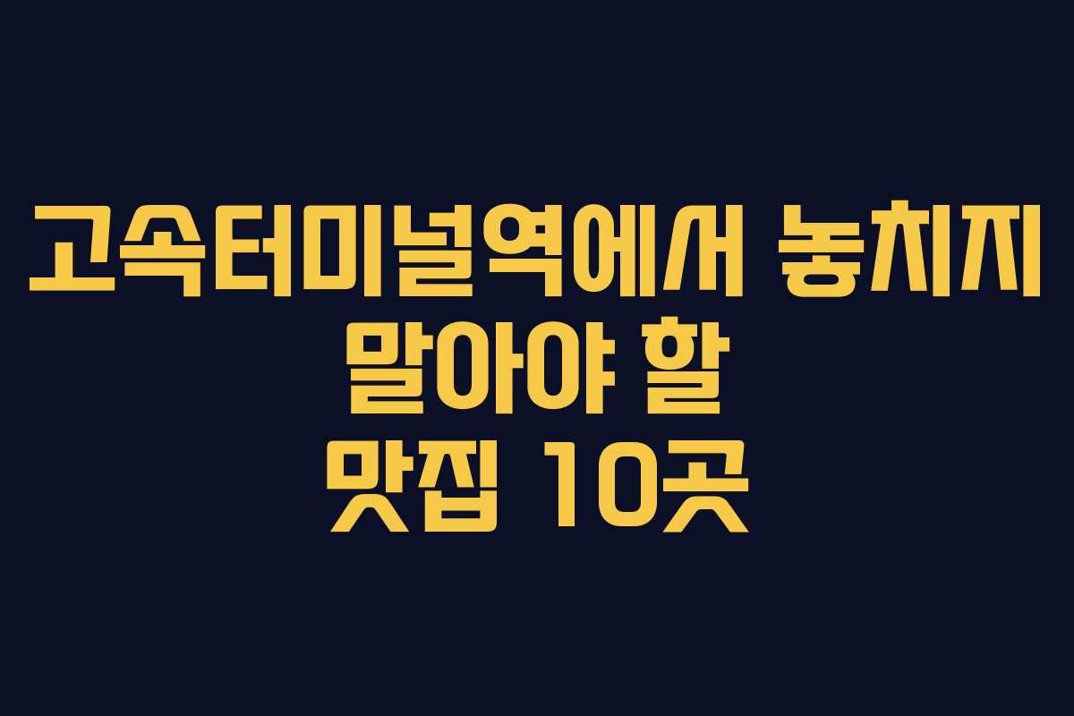 서울 고속터미널역은 많은 사람들이 오가는 교통 요충지로, 다양한 맛집들이 밀집해 있는 곳이다. 이 지역은 약속 장소로 자주 선택되며, 많은 사람들에게 사랑받는 다양한 음식점들이 존재한다. 이 글에서는 고속터미널역 주변에서 꼭 가봐야 할 맛집 10곳을 소개한다.