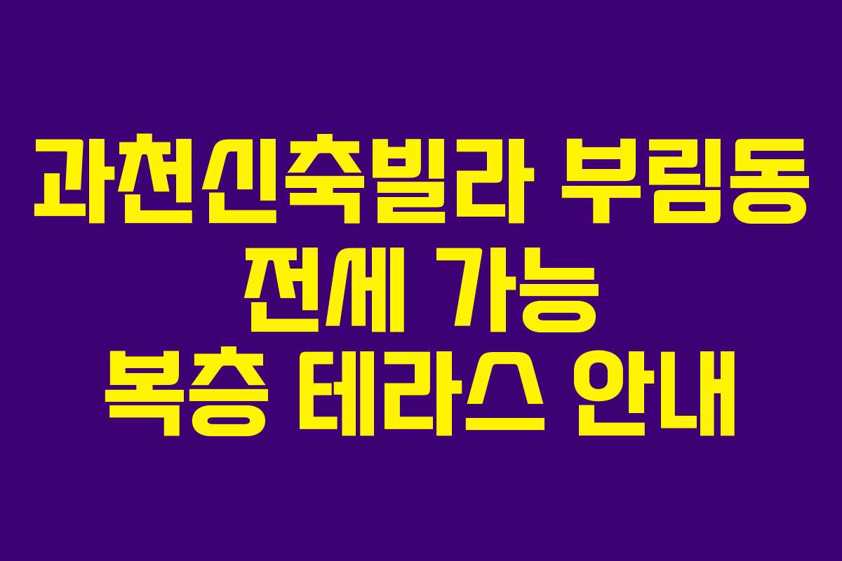 과천은 교통과 생활 편의성이 뛰어난 지역으로, 부림동에 위치한 신축 빌라에 대한 관심이 높아지고 있습니다. 이곳은 복층 구조와 테라스를 갖춘 마지막 한 세대가 전세로 제공되고 있어, 많은 이들의 주목을 받고 있습니다. 이 글에서는 해당 빌라의 특징과 주변 환경에 대해 자세히 알아보겠습니다.