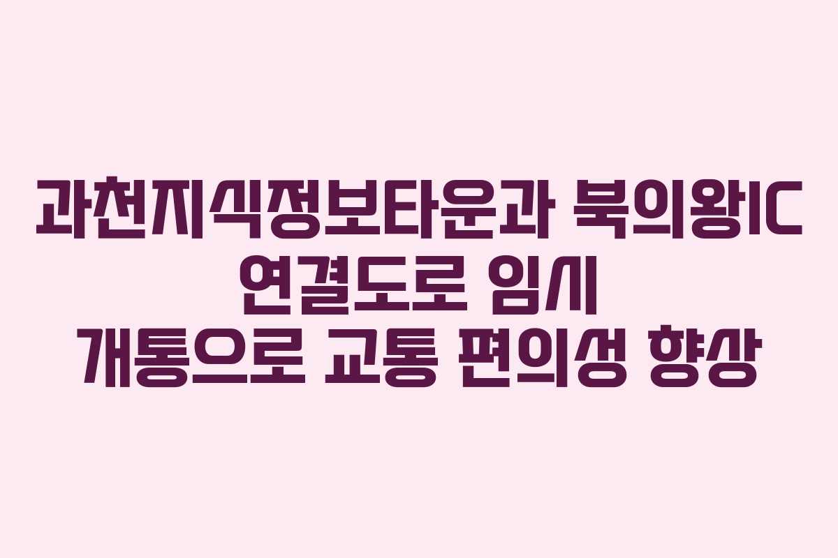 과천지식정보타운과 북의왕IC 연결도로 임시 개통으로 교통 편의성 향상