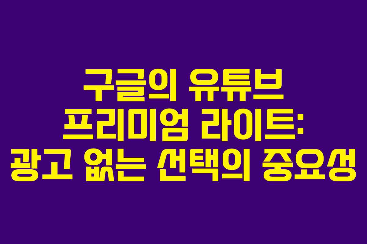 구글의 유튜브 프리미엄 라이트는 광고 없는 영상 시청을 원하는 소비자들에게 새로운 선택지를 제공하며, 특히 한국 시장의 특성을 반영한 차별화된 기능을 갖추고 있습니다. 앞으로 이 요금제가 어떻게 자리잡을지 기대가 됩니다.