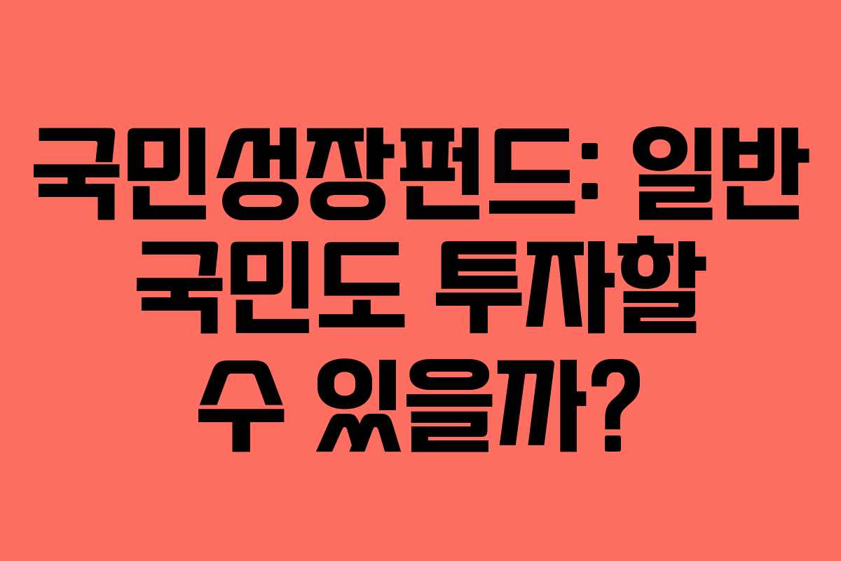 국민성장펀드에 일반 국민도 투자할 수 있나요?