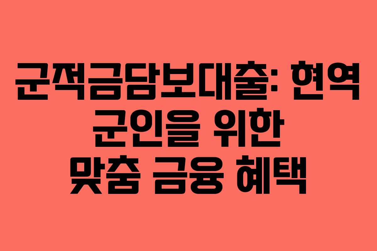 군적금담보대출은 군인이 가입한 군적금을 담보로 하여 대출을 받을 수 있는 제도입니다. 이 대출은 현역 군인들에게 특별히 설계된 금융 상품으로, 대출 과정이 간편하고 금리가 낮아 많은 군인들에게 도움이 됩니다.