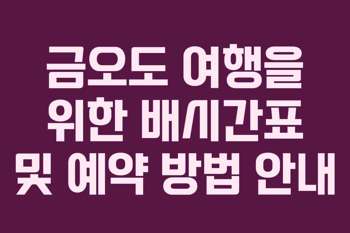 금오도에 가기 위해서는 여러 항구에서 출발하는 배편을 이용해야 합니다. 배 시간은 날씨와 상황에 따라 변동될 수 있으므로, 사전 확인이 필수입니다. 아래는 2026년 기준으로 제공되는 배시간표입니다.