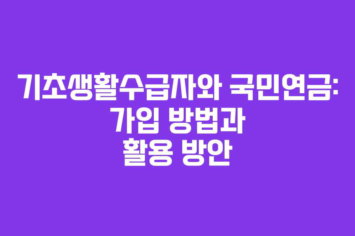기초생활수급자들이 국민연금을 활용하는 방법은 매우 중요하다. 다양한 혜택을 누릴 수 있으며, 노후 대비에도 큰 도움이 된다. 이번 포스팅에서는 기초생활수급자가 국민연금에 가입하는 방법과 그에 따른 혜택, 주의사항 등을 살펴보도록 하겠다.