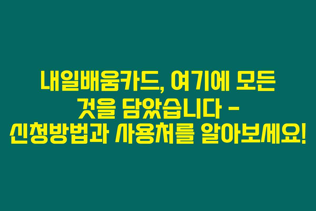 제가 직접 경험해본 결과, 내일배움카드는 정부가 마련한 이 직업능력 개발 카드에 대한 중요 정보를 제공하고 있습니다. 아래를 읽어보시면 내일배움카드의 신청 방법, 자격 그리고 사용처에 대해 자세히 아실 수 있어요.