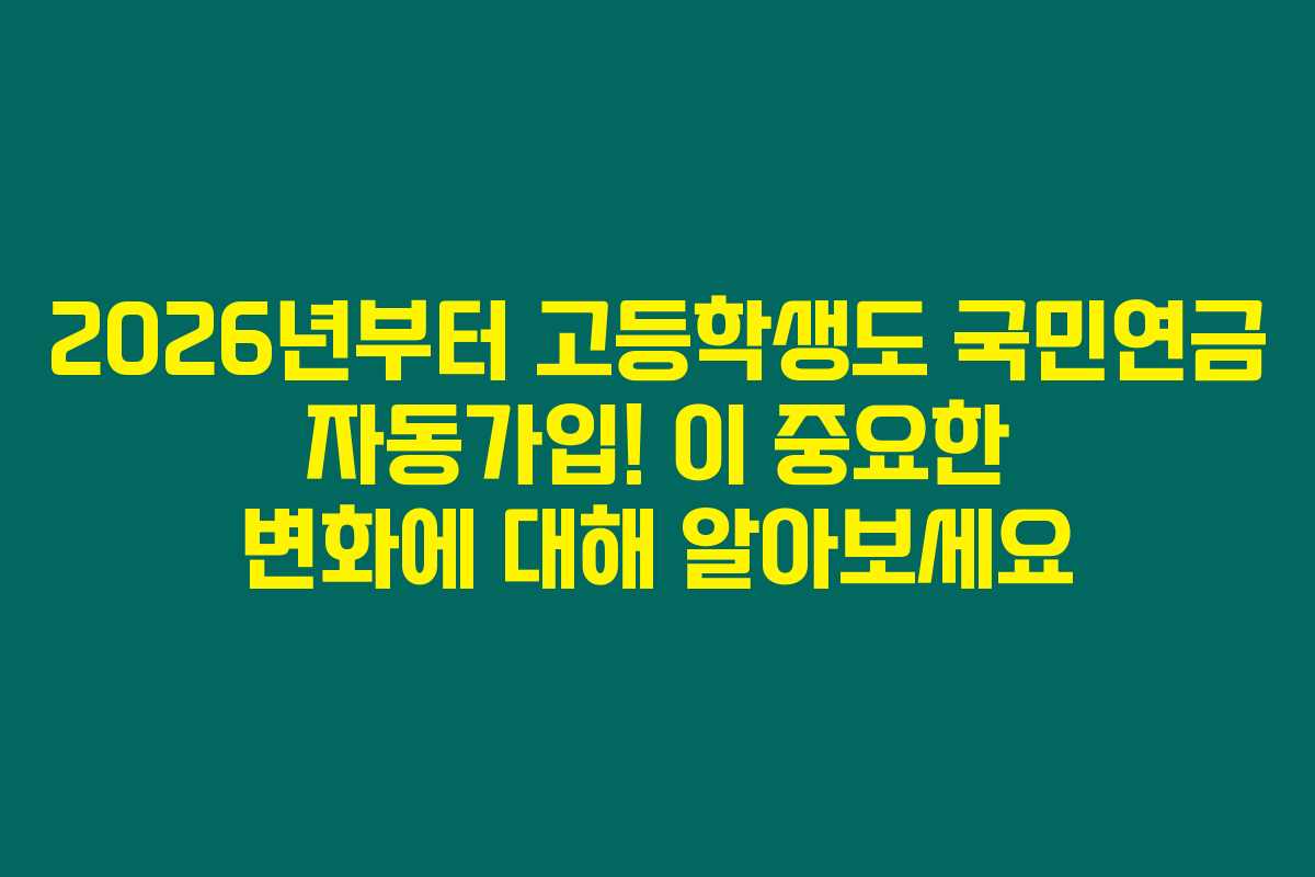 제가 직접 리서치한 바로는, 2026년부터 만 18세 고등학생은 소득에 관계없이 국민연금에 자동가입된다는 사실이 정말 흥미로운 변화입니다. 이번 법안은 첫 달 보험료를 국가가 전액 지원하고 이후 학생 또는 부모가 납부하는 구조로 되어 있어, 청년들에게 연금에 대한 인식을 확산시킬 수 있는 기회를 제공합니다. 아래를 읽어보시면 이 제도의 핵심 내용을 자세히 정리한 내용을 확인하실 수 있습니다.