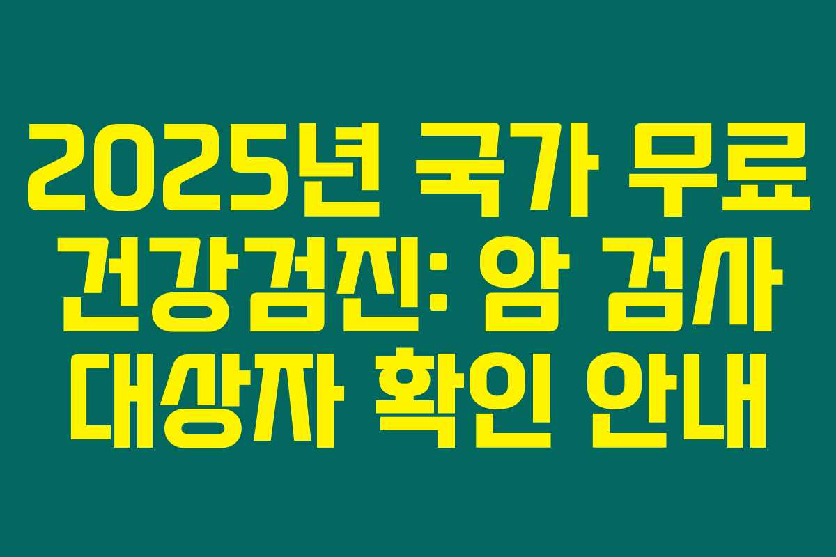 2025년에 시행되는 국가 무료 건강검진은 모든 국민에게 제공되며, 정기적인 검진을 통해 암과 같은 질병을 조기에 발견할 수 있는 기회를 제공합니다. 특히, 암 검진은 6대 암(위암, 간암, 대장암, 유방암, 자궁경부암, 폐암)에 해당되며, 각 암 종류마다 연령과 성별에 따라 무료 검진 대상자가 다르게 정해져 있습니다.