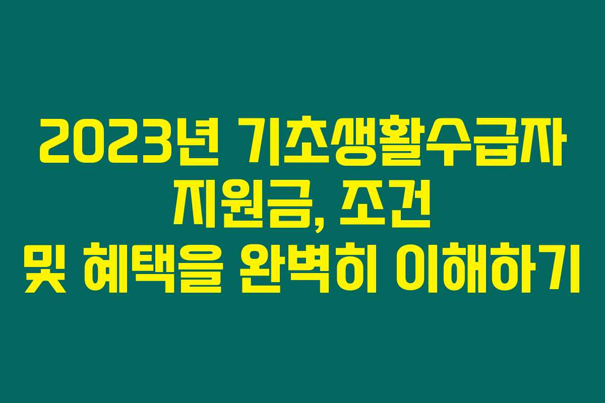 제가 직접 연구한 결과로는, 많은 분들이 기초생활수급자 제도를 통해 정부의 다양한 혜택을 누리고 있다는 사실을 알게 되었습니다. 특히 2023년에는 지원금이 대폭 확대되어 생활이 어려운 가구에 더 많은 도움을 줄 수 있는 기회가 마련됐습니다. 아래를 읽어보시면 기초생활수급자 지원금의 의의와 조건, 그리고 혜택에 대해 상세히 알아보실 수 있습니다.