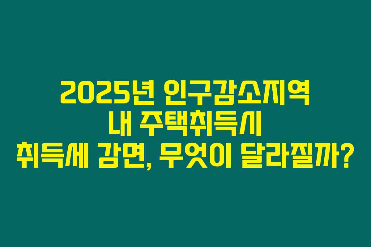 제가 직접 리서치한 바로는 2025년부터 시행될 인구감소지역 내 주택취득에 대한 취득세 감면 조항이 주택 시장에 긍정적인 영향을 미칠 것 같습니다. 이 결정은 특히 무주택자와 1가구 1주택자에게 더 많은 혜택을 제공하게 되며, 적절한 지역에서 적절한 주택을 찾고 있는 사람들에게 큰 도움이 될 것이라고 느꼈어요. 아래를 읽어보시면 이 변화가 주택 취득에 어떤 영향을 미치는지 알아볼 수 있습니다.