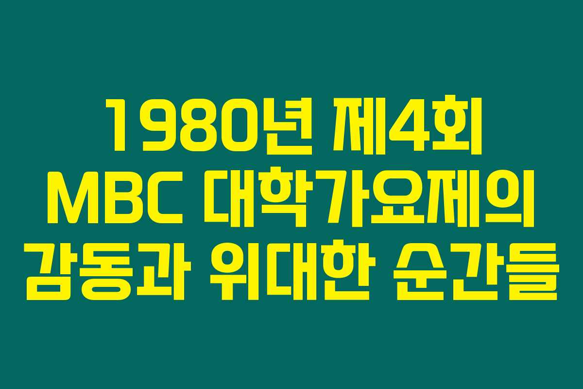 1980년 제4회 MBC 대학가요제를 기억하기 위해 이 글을 여는 여러분은 혹시 7080 음악이 그리운 분이신가요? 이 특별한 대회는 단순한 음악 축제가 아님을 이야기하고 싶어요. 대학가요제는 그 당시 대학생들의 열정과 꿈이 담긴 시간이었고 사회적 분위기까지 반영된 주요한 문화적 사건이었지요. 이 글을 통해 그 유명한 대회에서 어떤 곡들이 사랑받았는지 알아보실까요?