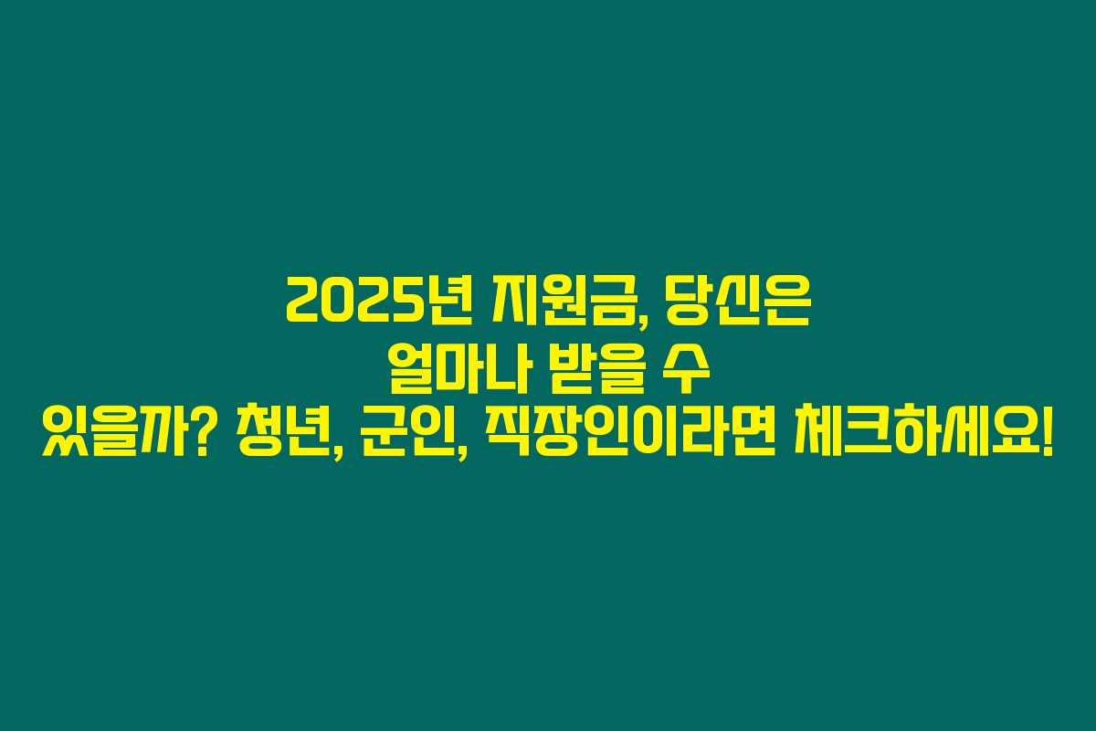2025년 지원금, 당신은 얼마나 받을 수 있을까? 청년, 군인, 직장인이라면 체크하세요!