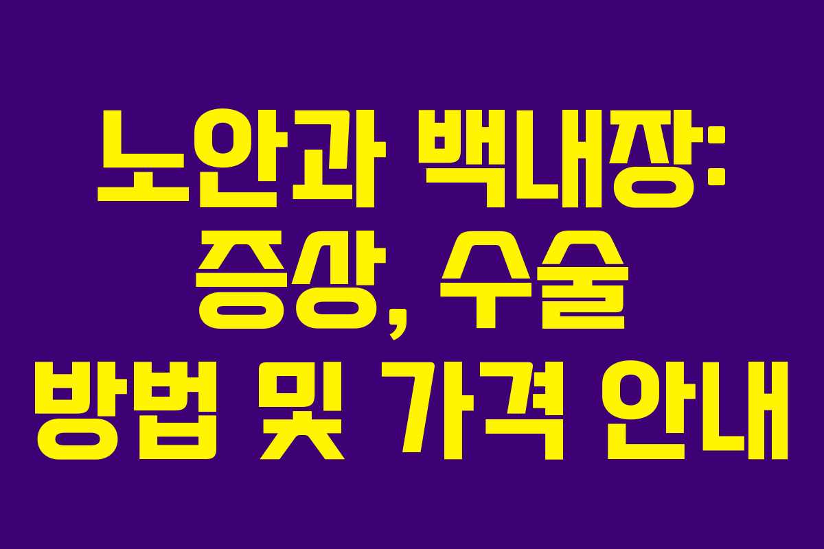 고령층에서 흔히 발생하는 안 질환인 노안과 백내장은 시력 저하의 주요 원인으로, 많은 사람들이 이 두 가지 질환의 초기 증상을 혼동하기 쉽습니다. 이 글에서는 노안과 백내장의 증상, 수술 방법, 가격 등을 살펴보겠습니다.