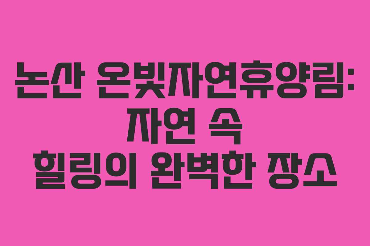 논산 온빛자연휴양림은 도심을 벗어나 자연 속에서 재충전할 수 있는 완벽한 장소입니다. 예약 팁을 참고하여 최적의 숙소를 찾아보시고, 온빛자연휴양림에서의 특별한 시간을 통해 몸과 마음을 힐링하는 여행을 즐기시길 바랍니다!