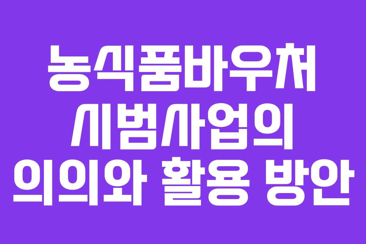 또한, 농식품바우처 시범사업의 시행은 먹거리 정의를 실현하여 사회적 가치를 증대시키는 데 기여할 것으로 예상된다. 저소득층이 보다 쉽게 신선한 농산물을 구매할 수 있는 기회를 제공함으로써, 건강한 식생활을 영위할 수 있도록 지원하는 것이다.