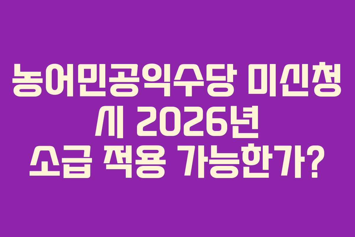 농어민공익수당을 신청하지 않았다면, 2026년에 소급 적용이 가능할까요? 제 경험상, 농업인들은 이 부분에 대해 명확하게 이해할 필요가 있습니다. 농어민공익수당은 신청 기간 내에 서류를 제출해야만 지원을 받을 수 있으며, 소급 적용은 일반적으로 불가능합니다. 따라서, 미신청 시에는 지원을 받지 못할 가능성이 높습니다.