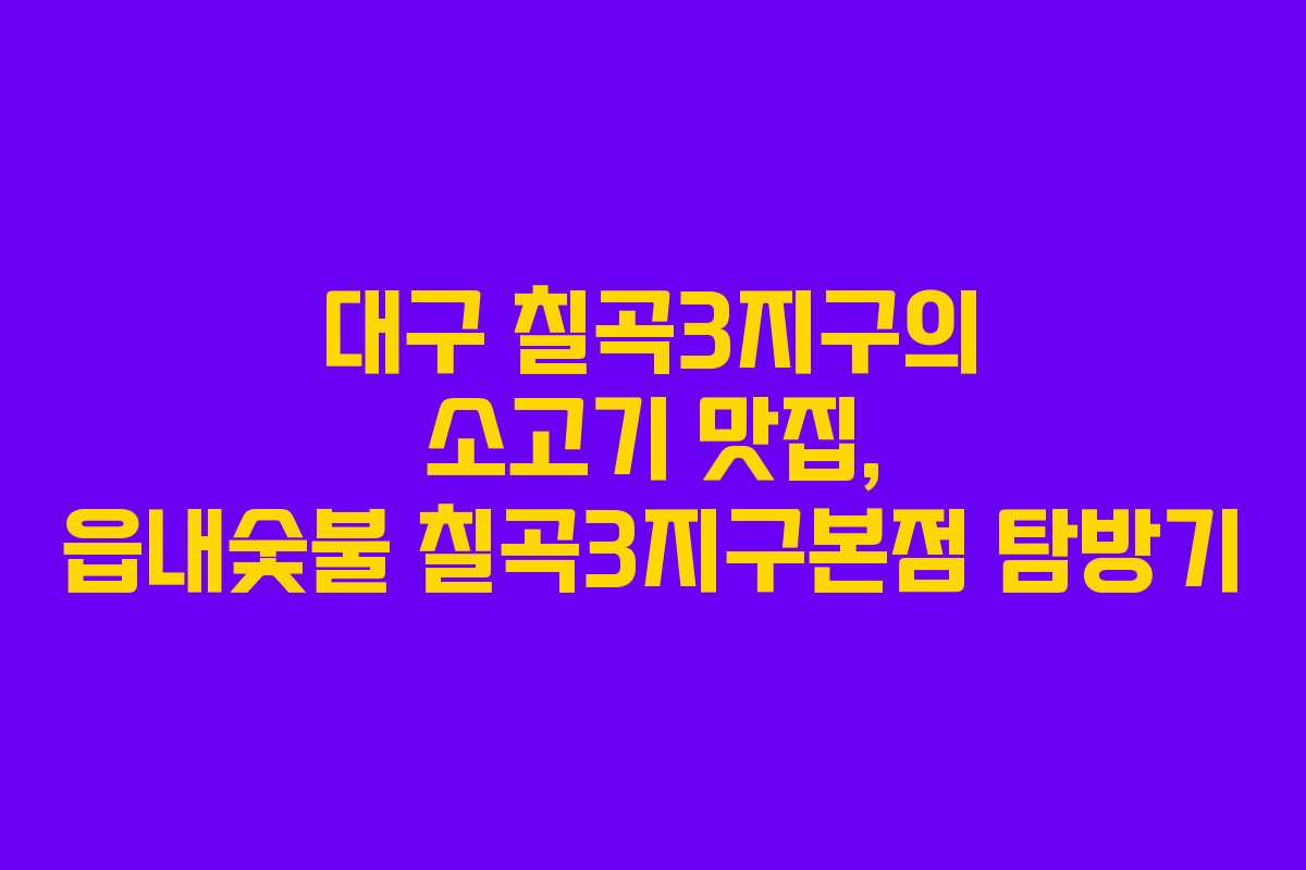대구 칠곡3지구에는 소고기로 유명한 음식점이 있습니다. 이곳은 소고기 애호가들에게 특히 추천되는 장소로, 다양한 메뉴와 훌륭한 맛을 자랑합니다. 본문에서는 읍내숯불 칠곡3지구본점의 위치, 메뉴, 그리고 맛에 대해 자세히 소개하겠습니다.