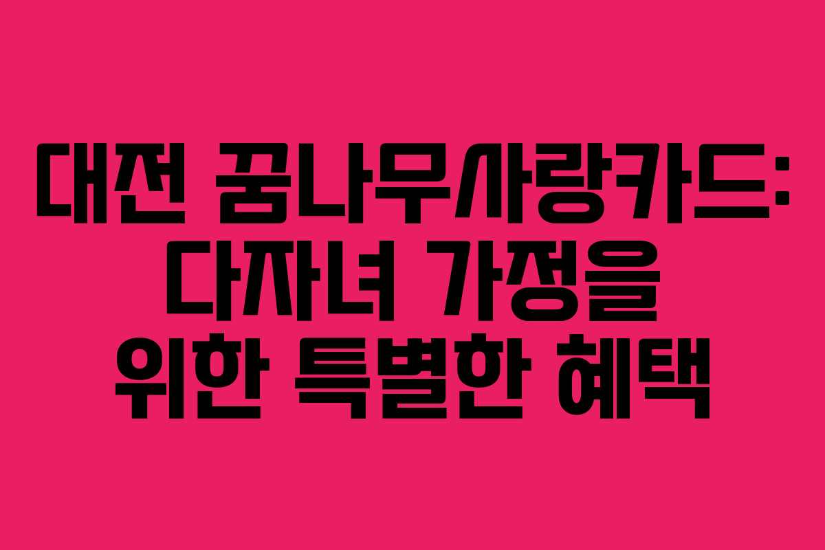 대전 꿈나무사랑카드는 대전 시민에게 다양한 혜택을 제공하는 카드로, 특히 2자녀 이상을 둔 가정을 지원하여 경제적 부담을 덜어주는 것이 특징입니다. 이 글에서는 대전 꿈나무사랑카드의 발급 기준, 혜택, 발급 방법에 대해 자세히 살펴보겠습니다.