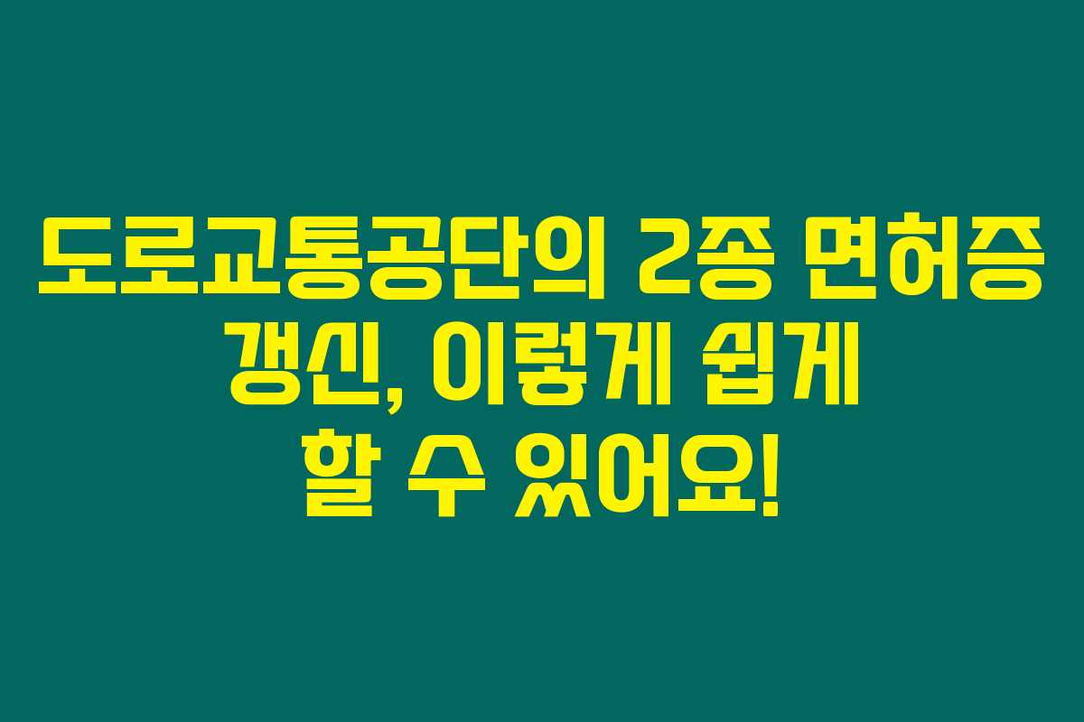 도로교통공단의 2종 면허증 갱신, 이 방법으로 쉽게 진행할 수 있어요. 자칫 놓치기 쉬운 면허 갱신이니 필요한 절차를 미리 준비하여 잊지 않도록 하세요. 면허 갱신 후 안전하고 신뢰감 있는 운전이 계속 이어지길 바랍니다.
