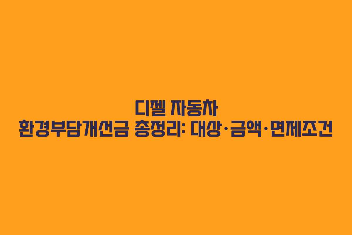 디젤 자동차 환경부담개선금은 노후 경유차의 배출 오염물질을 줄이고 친환경 차량으로의 전환을 유도하기 위해 부과되는 제도입니다. 차량 소유자라면 반드시 알아야 할 중요한 내용입니다.