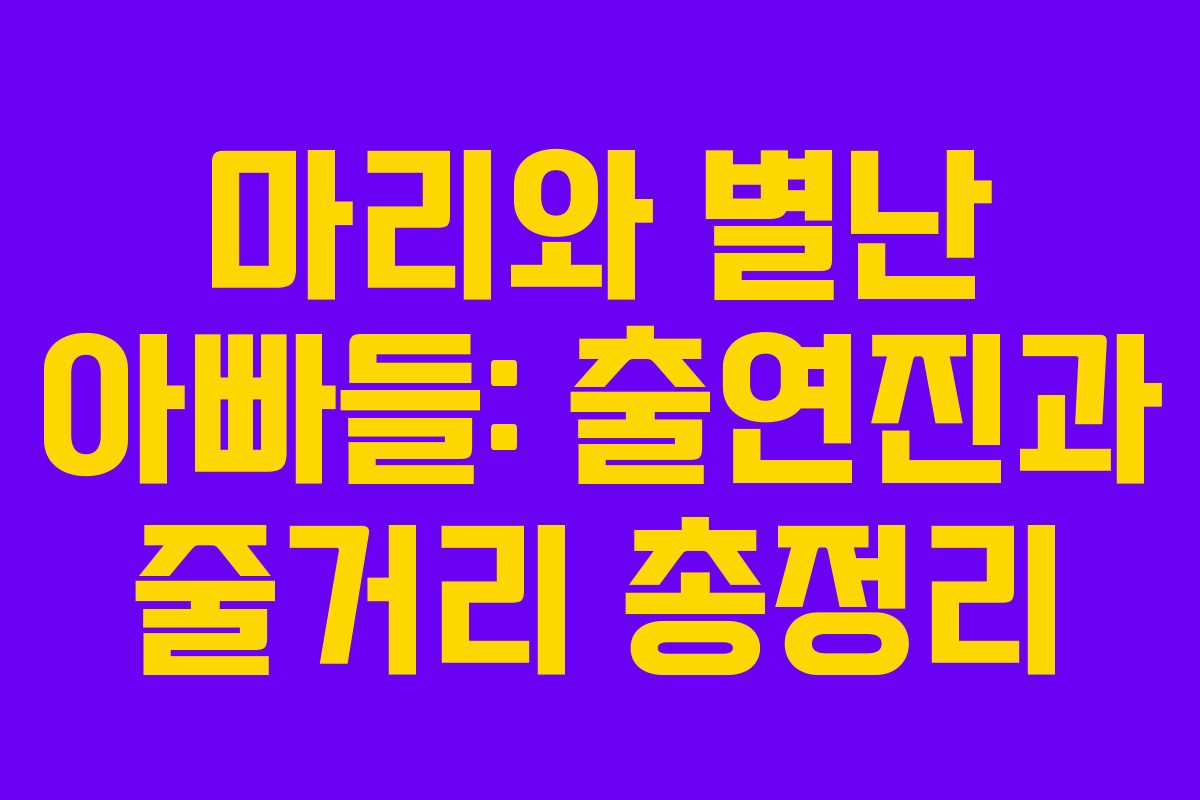 2025년 10월 13일 첫 방송되는 KBS 1TV의 새 일일드라마 〈마리와 별난 아빠들〉은 현대 가족의 다양한 형태를 유쾌하게 그린 가족 코미디 드라마입니다. 본 작품은 하승리, 현우, 박은혜, 류진 등 초호화 캐스팅으로 많은 기대를 모으고 있습니다.