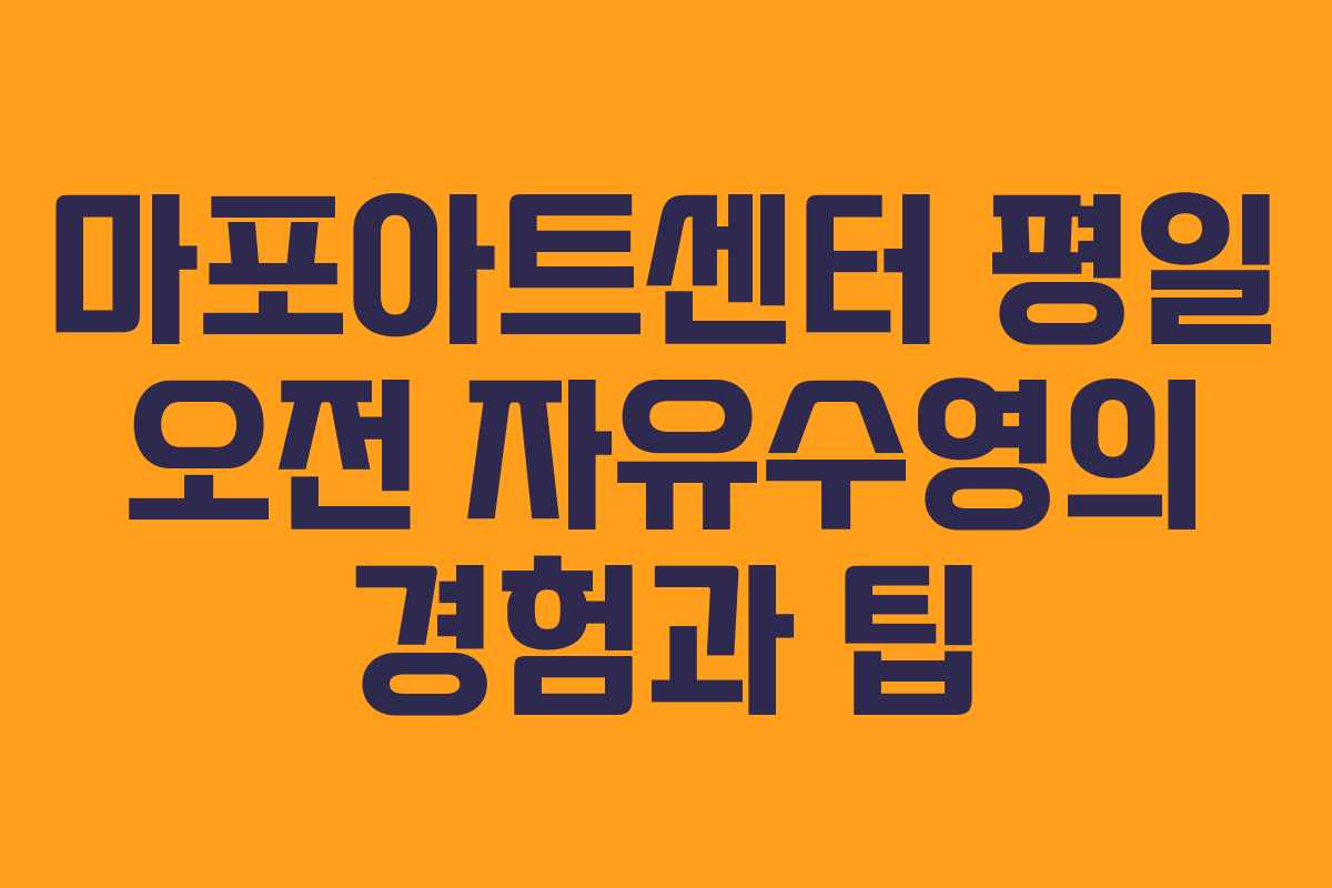 마포아트센터에서의 평일 오전 자유수영은 직장인에게 유용한 운동 시간이 될 수 있다. 특히 아침 시간을 활용하여 수영을 즐기는 것은 심신의 건강을 챙기는 좋은 방법이다. 이 글에서는 마포아트센터에서의 자유수영 경험을 바탕으로 여러 유용한 정보를 제공하고자 한다.
