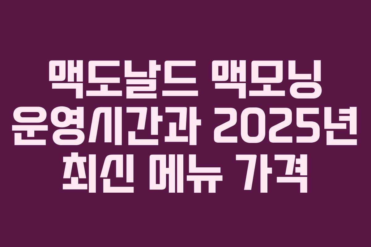 2025년 맥모닝 메뉴의 가격은 지역에 따라 다를 수 있으나, 평균적으로 에그 맥머핀은 약 3,500원, 베이컨 에그 맥머핀은 약 4,000원 정도입니다. 정확한 가격은 매장에서 확인하는 것이 가장 좋습니다.