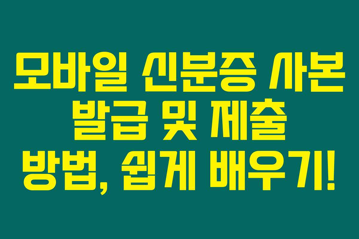 모바일 신분증 사본을 발급받고 제출하는 방법이 궁금하신가요? 모바일 신분증은 요즘 우리가 일상에서 자주 필요한 서류 중 하나인데요. 특히 금융 거래나 공공기관 방문 시에 필수적으로 요구되기도 해요. 하지만 많은 사람들이 그 절차를 몰라서 애를 써본 경험이 있지 않으신가요? 아래를 읽어보시면 모든 과정을 쉽게 안내드릴게요!