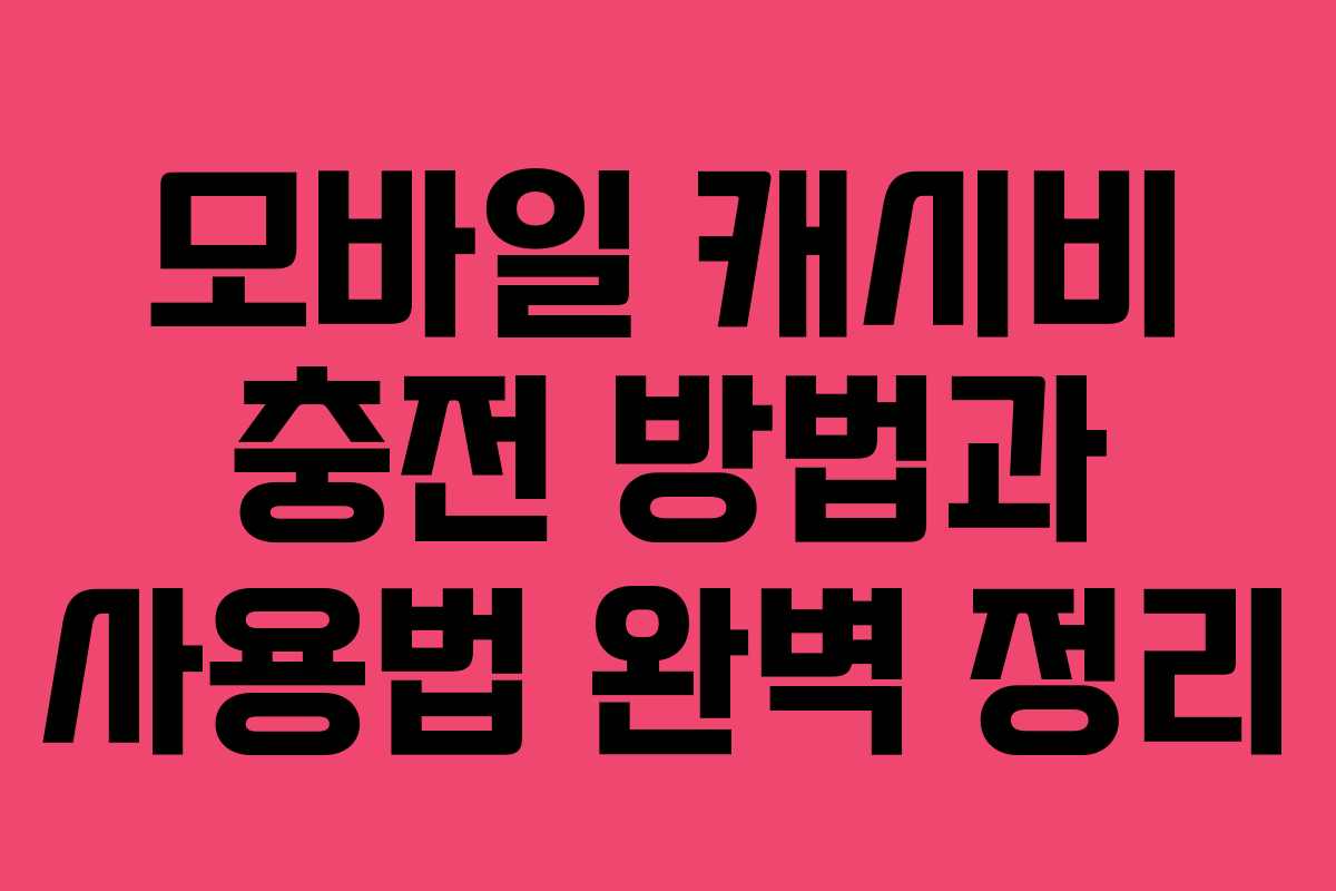 모바일 캐시비 충전 방법과 사용법 완벽 정리