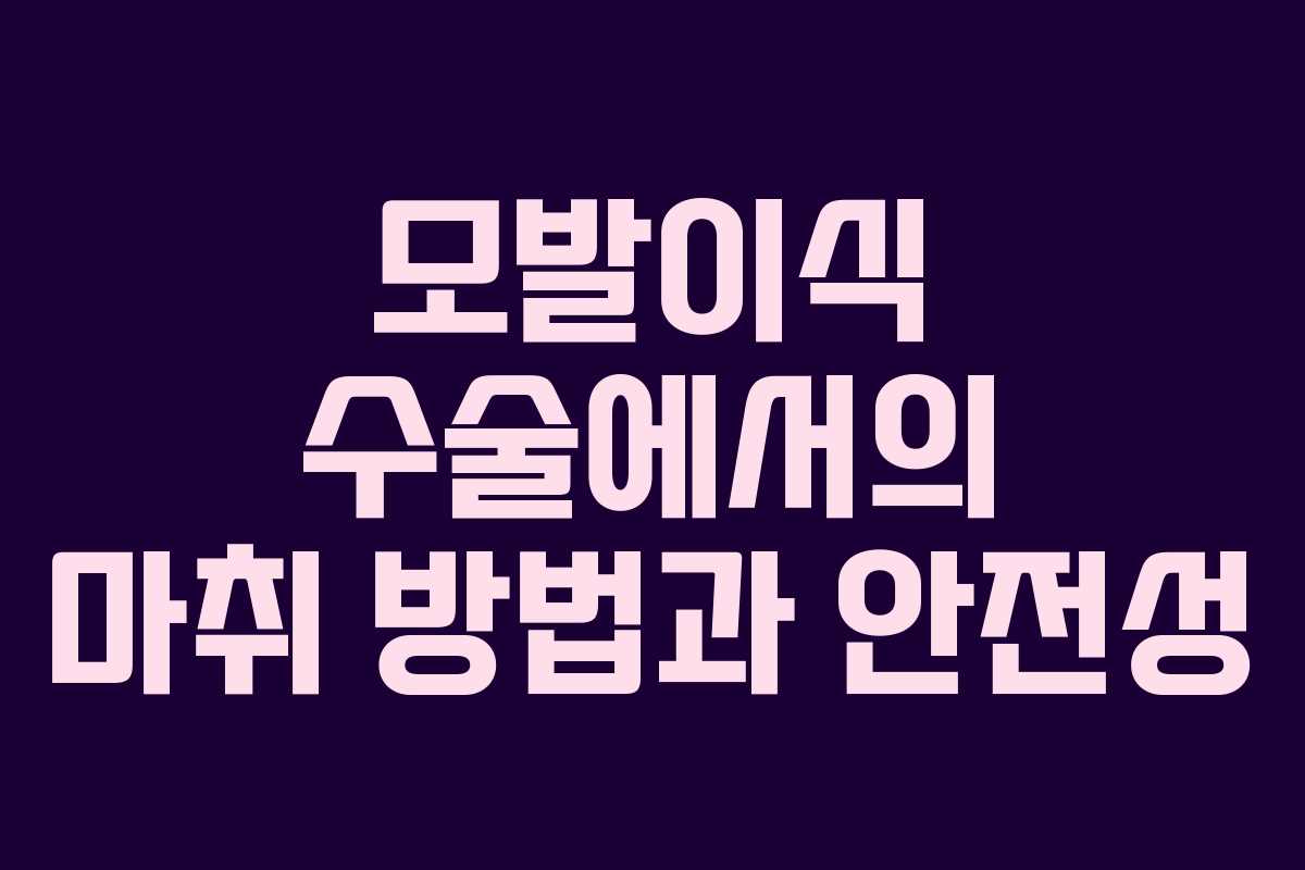 모발이식 수술은 국소마취로도 충분히 안전하게 진행될 수 있습니다. 전문 의료진의 관리 아래에서 환자는 안심하고 수술을 받을 수 있습니다.