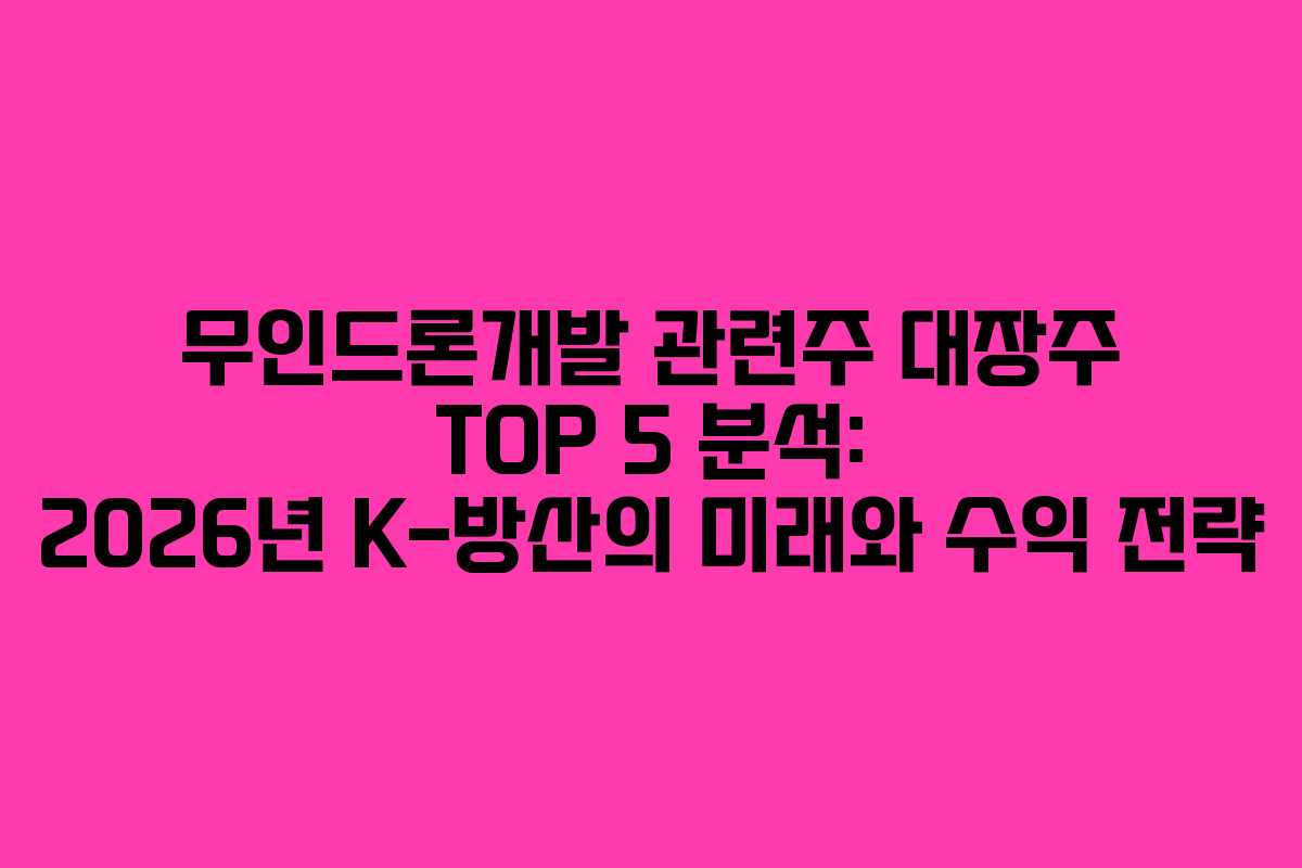 무인드론개발 관련주 대장주 TOP 5 분석: 2026년 K-방산의 미래와 수익 전략