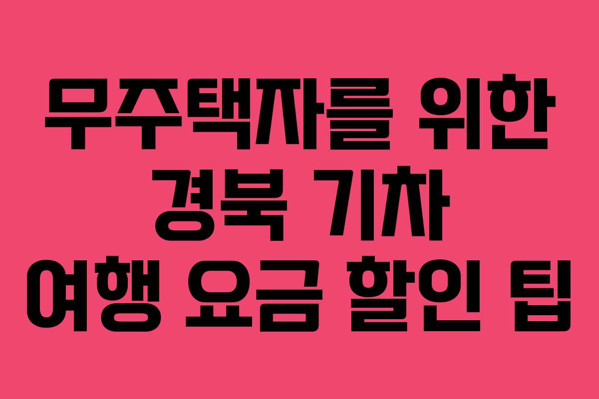 기차 여행은 특별한 경험이 될 수 있습니다. 경북의 아름다움과 무주택자로서의 다양한 할인 혜택을 잘 활용하여 잊지 못할 여행을 만들어 보세요!