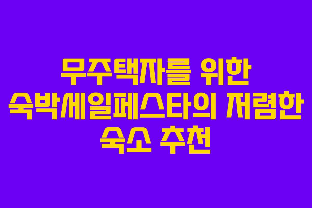 무주택자로 살아가는 30대 초반의 저에게, 최근에 열린 숙박세일페스타는 정말 소중한 기회였습니다. 경제적인 부담이 큰 요즘, 이 특별한 행사에서 저렴한 숙소를 찾는 방법을 공유하고자 합니다. 저는 개인적으로 경험한 숙소들을 바탕으로 여러분이 알뜰한 여행을 계획하는 데 도움을 드리겠습니다.