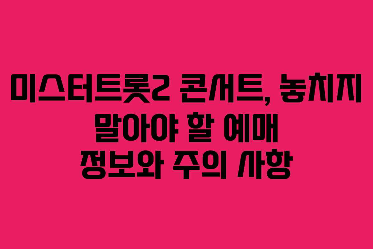미스터트롯2 콘서트는 많은 이들이 기대하는 행사로, 이 기회를 놓치지 않도록 해야 한다. 예매를 통해 소중한 순간을 즐길 수 있는 준비를 하는 것이 중요하다.