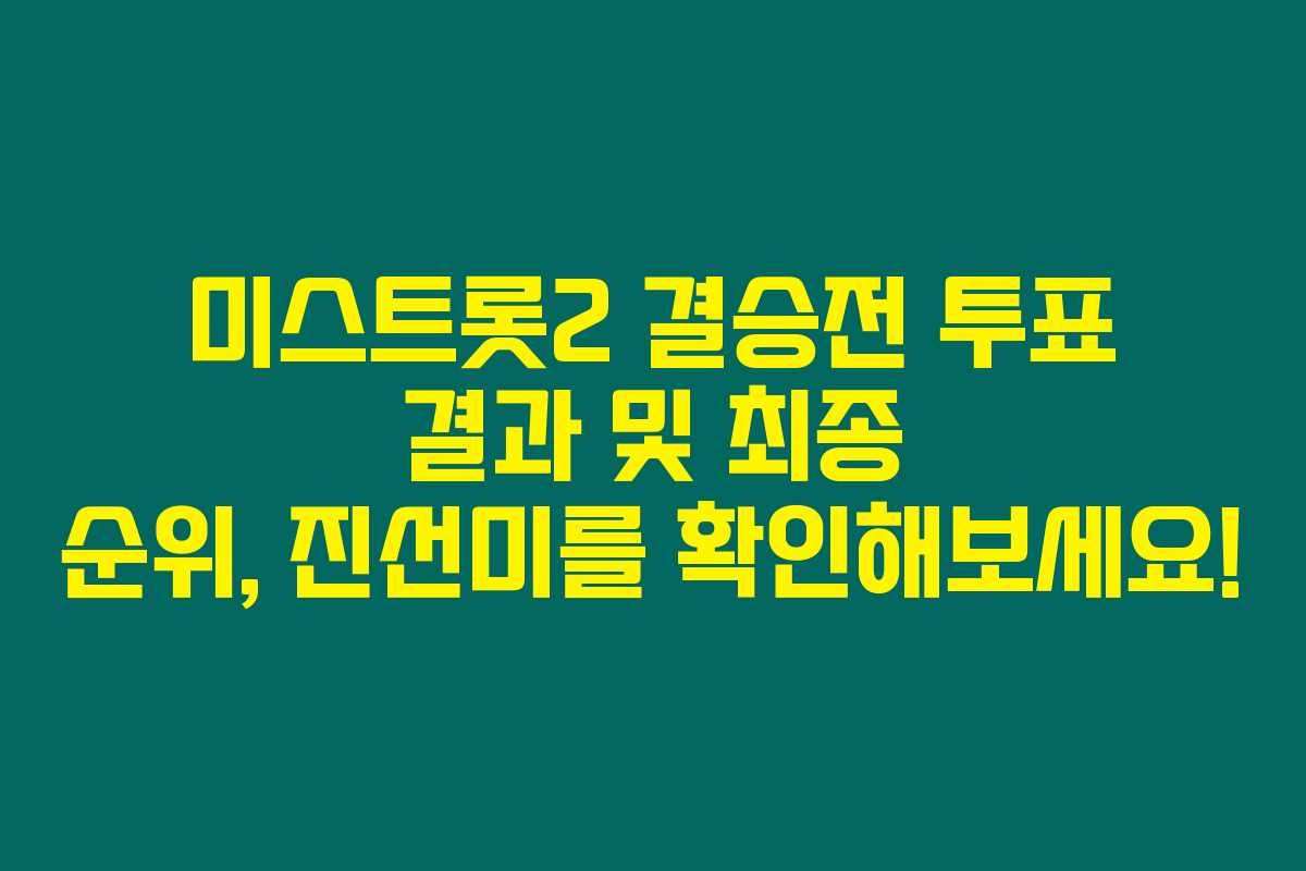여러분, 미스트롯2의 최종 결승전 결과가 공개되었답니다. 결승전이 두 차례 진행된 가운데 최종 우승자가 과연 누구일지 궁금하신가요? 결승전에서의 투표 결과와 함께 진(眞), 선(善), 미(美)의 주인공을 공개할게요. 아래를 읽어보시면 많은 관심과 화제를 모은 미스트롯2 결승전의 모든 것에 대한 최신 정보를 확인할 수 있습니다.