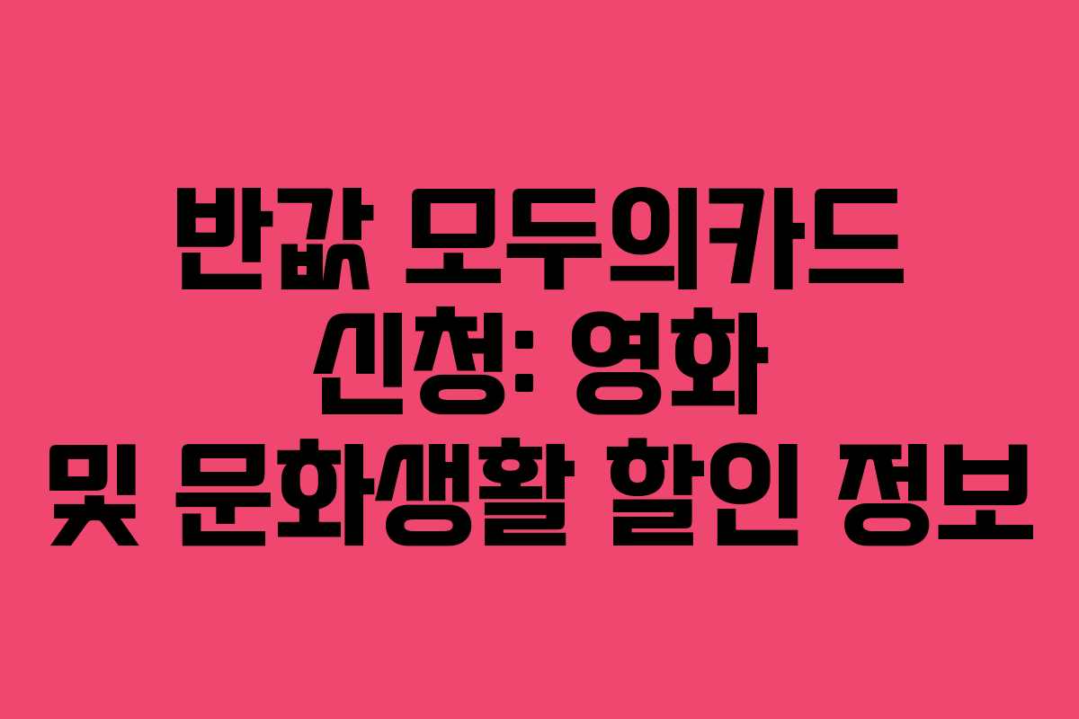 영화와 문화생활을 즐기는 것은 많은 사람들에게 일상의 활력을 주는 중요한 요소입니다. 하지만 비용이 만만치 않아 고민하는 분들이 많을 것입니다. 저 또한 그런 고민을 가진 한 사람이었습니다. 그러던 중 우연히 ‘반값 모두의카드’를 알게 되었고, 이를 통해 얻은 다양한 할인 혜택은 제 문화생활을 더욱 풍부하게 만들어주었습니다. 이번 포스팅에서는 반값 모두의카드의 신청 방법과 함께 영화 및 문화생활에서 누릴 수 있는 할인 혜택에 대해 자세히 소개하겠습니다.