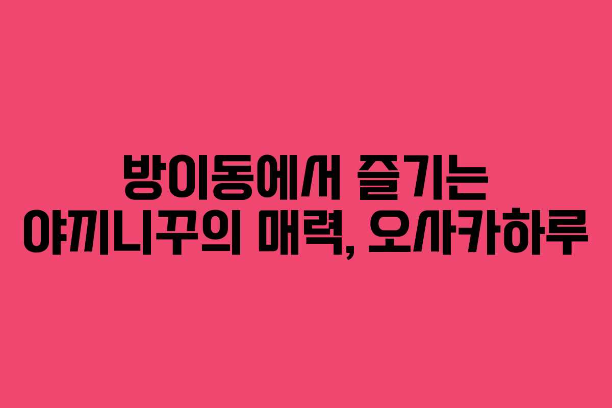 방이동의 오사카하루는 야끼니꾸를 사랑하는 사람들에게 꼭 가봐야 할 맛집이다. 고기와 함께하는 다양한 메뉴와 아늑한 분위기 속에서 특별한 시간을 보내는 것은 정말 값진 경험이 될 것이다. 다음에 다시 방문할 계획을 세우며, 맛있는 야끼니꾸를 잊지 않을 것이다.