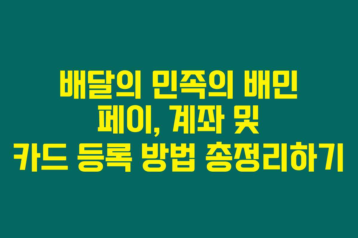 제가 직접 경험해본 결과로는, 배달의 민족에서 배민 페이를 이용하면 음식 배달 결제가 훨씬 더 쉬워지고, 다양한 혜택도 누릴 수 있어요. 아래를 읽어보시면 배민 페이에 계좌나 카드를 등록하는 방법과 그 혜택에 대해 자세히 알아볼 수 있습니다.