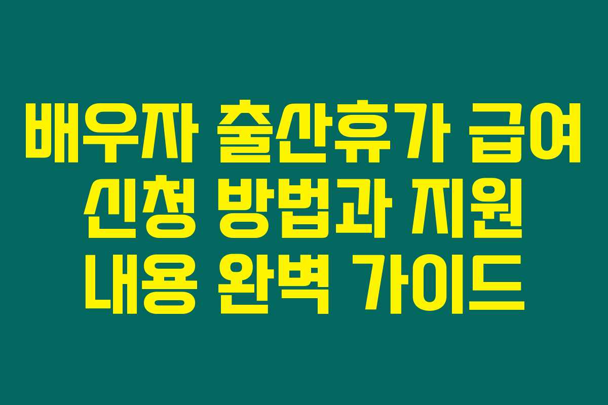 제가 직접 경험해본 결과로는, 배우자 출산휴가는 가족의 소중한 순간을 함께 할 수 있게 해주는 중요한 제도입니다. 이 제도를 통해 남편이나 아내가 출산에 함께할 수 있으며, 재정적인 지원도 받을 수 있다는 점에서 많은 분들이 궁금해하실 것 같아요. 아래를 읽어보시면 배우자 출산휴가의 급여 신청 방법과 지원 내용에 대한 자세한 안내를 확인하실 수 있습니다.