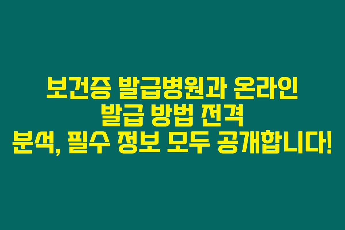 보건증이 필요한 직종에 종사하고 있는 분들은 필수적으로 이 글을 살펴보셔야 합니다. 보건증이 어디서 발급받는지 궁금하시죠? 보건증을 발급받기 위한 병원 찾기와 온라인 발급 방법까지 모든 정보를 준비했습니다. 아래를 읽어보시면 건강과 안전을 위한 필수 정보를 가득 담고 있으니 놓치지 마세요!